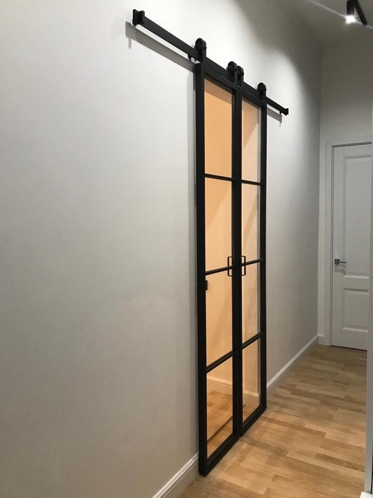 Двухсторонние доводчики на откатной механизм, защитная пленка, узкопрофильные замки.