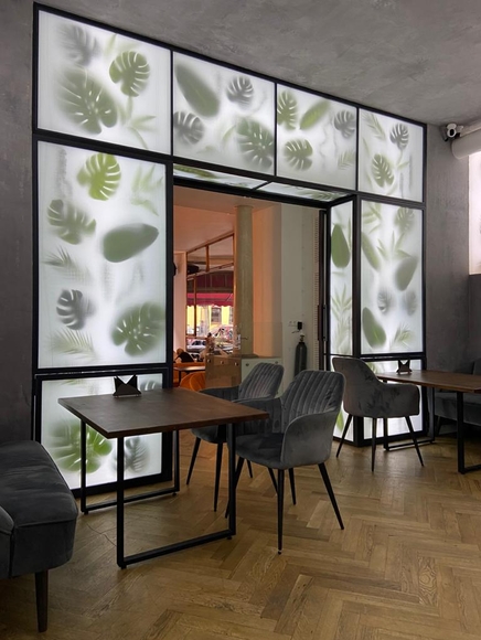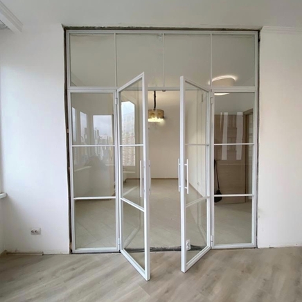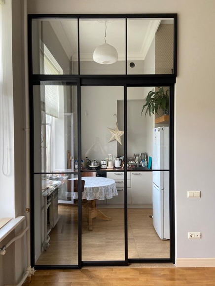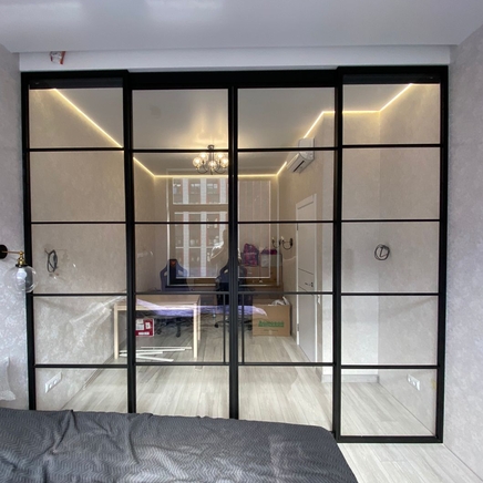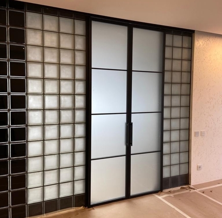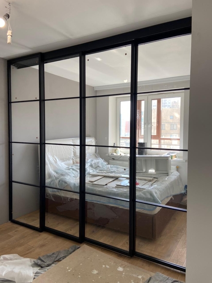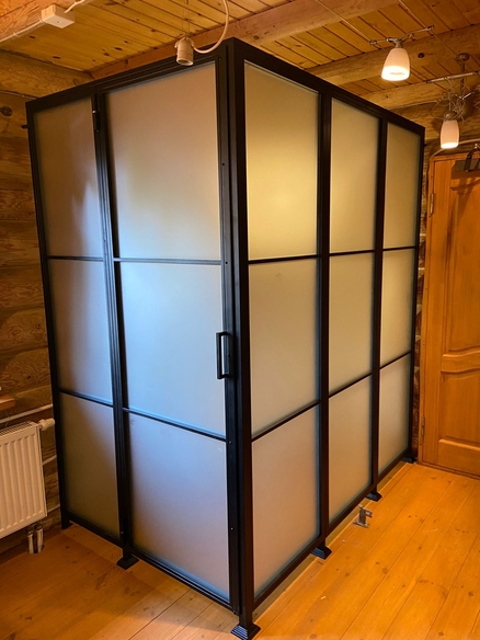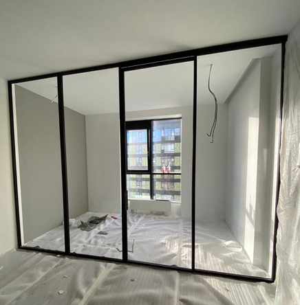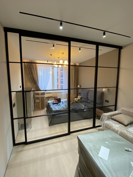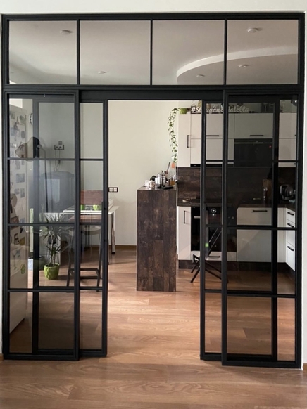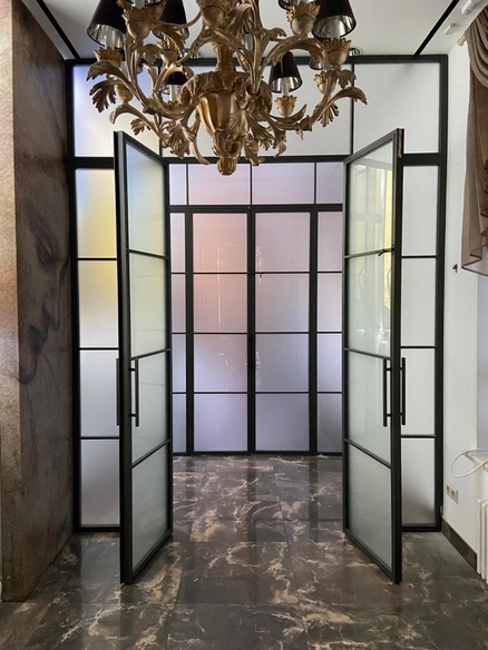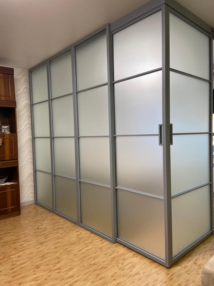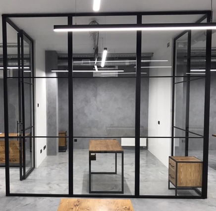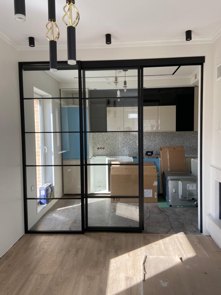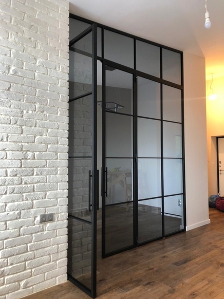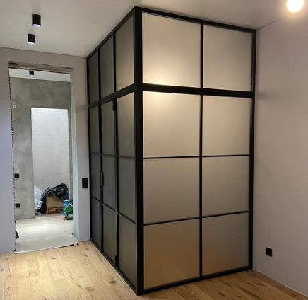 Материал: Каркас стальной профиль 40х20 мм+ рамка стекла 15х15 мм. Толщина на фасаде 35 мм.